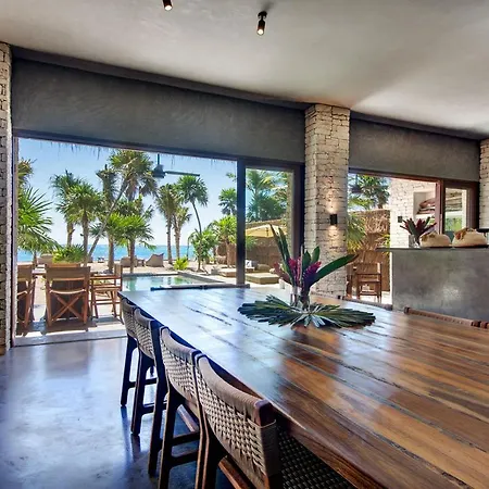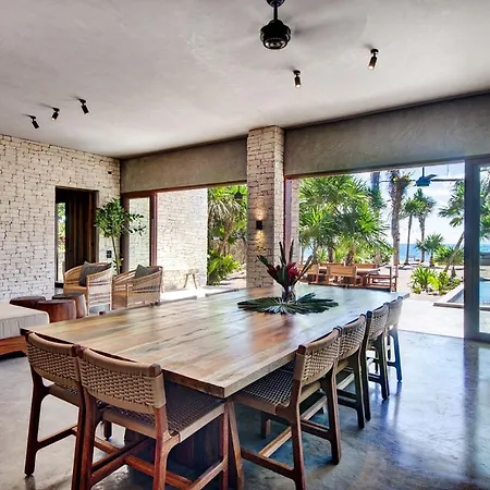 Beachfront Villa Soliman Bay 12 Tulum med 5 sovrum, som ligger invid Parque De Cenotes Yax-Muul, erbjuder ett matbord på en terrass för en trevlig vistelse. I den här villan, som ligger precis runt hörnet från Jungla Maya Native Park, kan gästerna njuta av Wi Fi och en parkering.